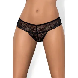 Dámská tanga Miamor thong OBSESSIVE - černá barva - elegantní, krajková tanga - okouzlující lesklé kamínky na předním díle - trojúhelníkový díl zadní strany zdůrazní hýždě a vyzdvihne perfektní tvary - pěkný a elastický materiál
