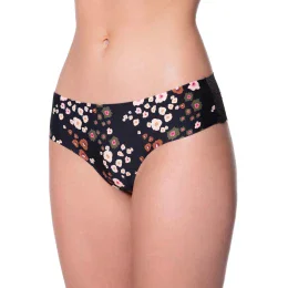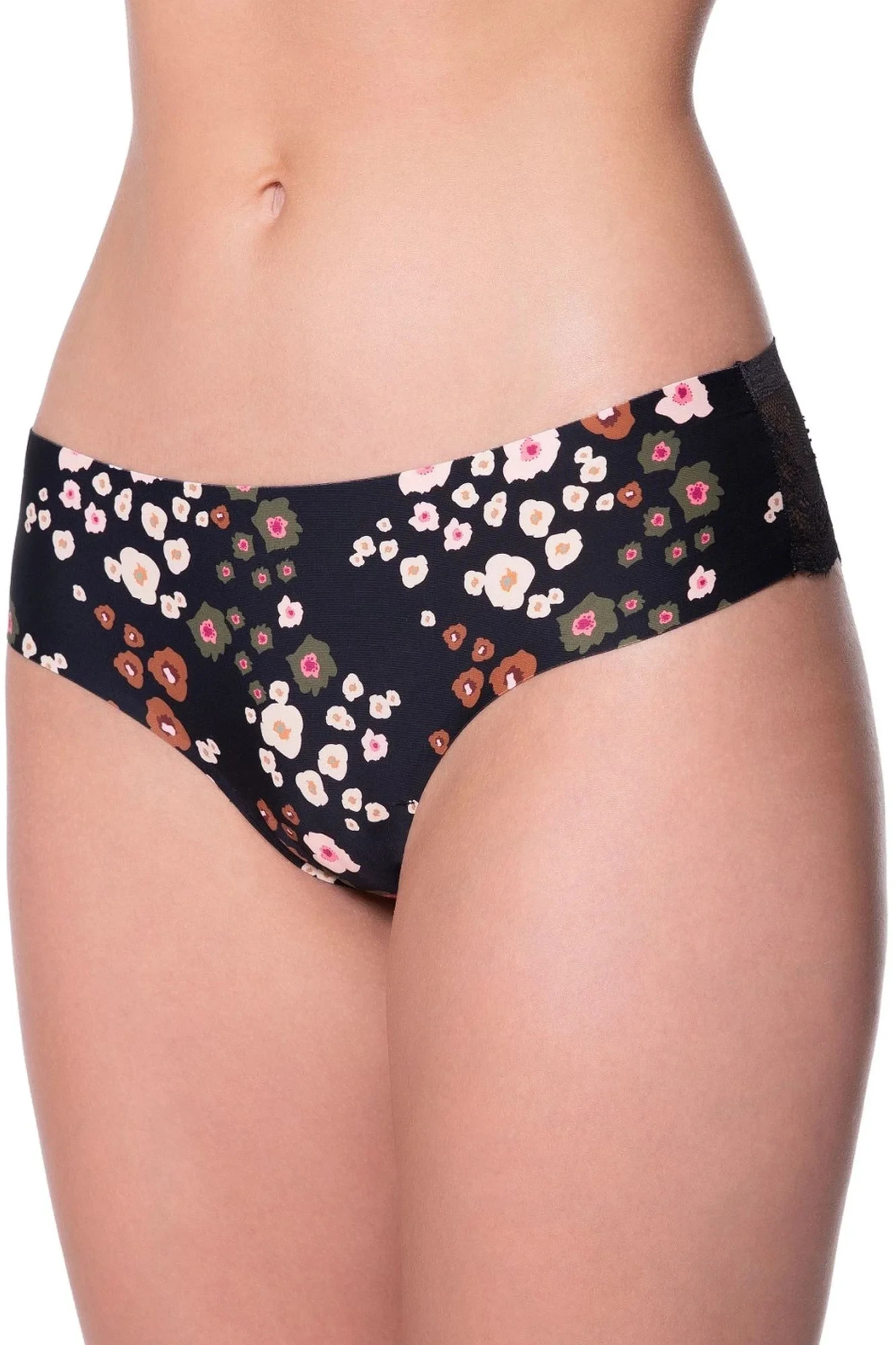 Dámská tanga Peggy JULIMEX - hnědá barva - z vysoce jakostní tkaniny - se vzorem květin - zadní část zdobená krajkou - technologie INVISIBLE LINE na ultratenké okraje - řezané laserem - neviditelné pod oblečením