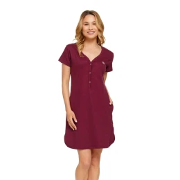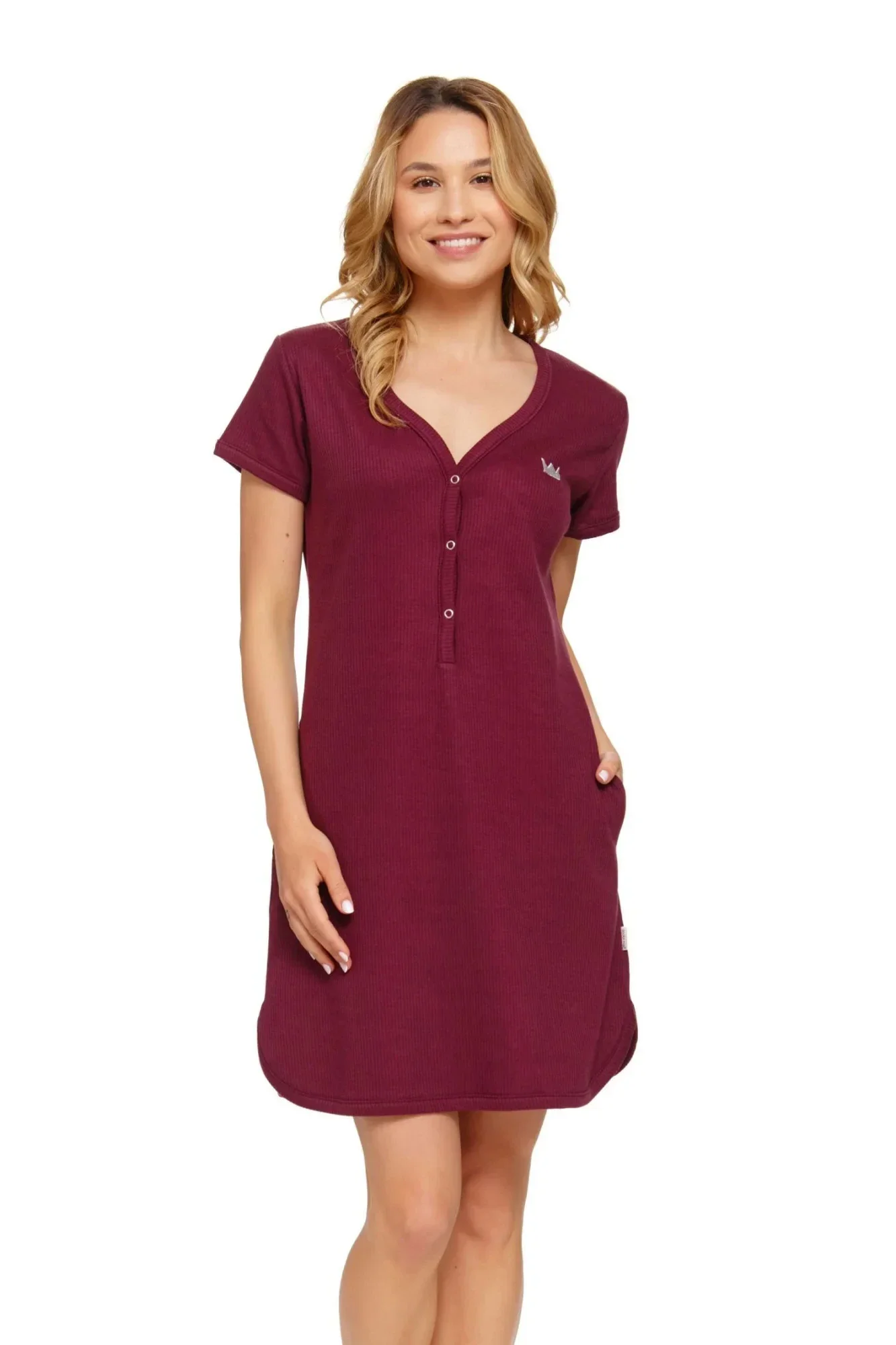 Dámská těhotenská košile 4115 wine Doctornap - bordó barva - z vysoce jakostní bavlny - na prsou zdobená nášivkou - výstřih se zapínáním na patentky - krátké rukávy - kapsy na bocích - ideální pro těhotné a kojící - hypoalergenní - certifikát OEKO-TEX Standart 100
