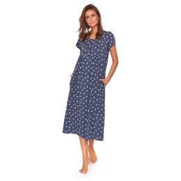 Dámská těhotenská košile 4119 blue Doctornap - světle modrá barva - z vysoce jakostní bavlny - krátké rukávy - výstřih se zapínáním na patentky - s potiskem - s kapsami - pro kojící a těhotné ženy - certifikát OEKO-TEX Standard 100