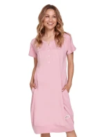 Dámská těhotenská košile 4348 violet Doctornap - světle fialová barva - z vysoce jakostní bavlny - s krátkými rukávy - zapínání na patentky - na bocích kapsy - ideální pro těhotné a kojící ženy - certifikát OEKO-TEX Standard 100