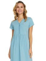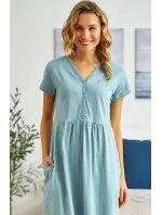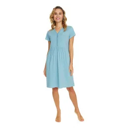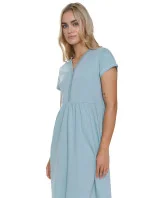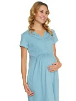 Dámská těhotenská košile 5336 Doctornap - světle modrá barva - z vysoce jakostní bavlny - s krátkými rukávy - zapínání na patentky - na bocích kapsy - spodní část s ozdobným řasením - ideální pro těhotné a kojící ženy - certifikát OEKO-TEX Standard 100