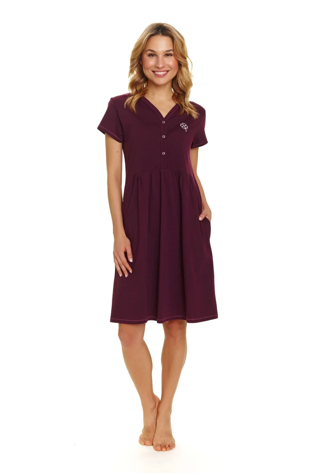 Dámská těhotenská košile 5336 wine Doctornap - vínová barva - z vysoce jakostní bavlny - výstřih se zapínáním na patentky - zdobená potiskem na přední straně - krátké rukávy - kapsy na bocích - ideální pro těhotné a kojící - certifikát OEKO-TEX Standart 100
