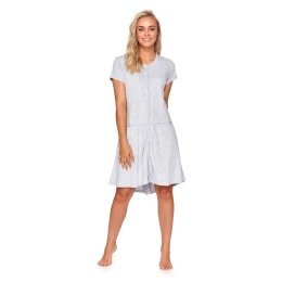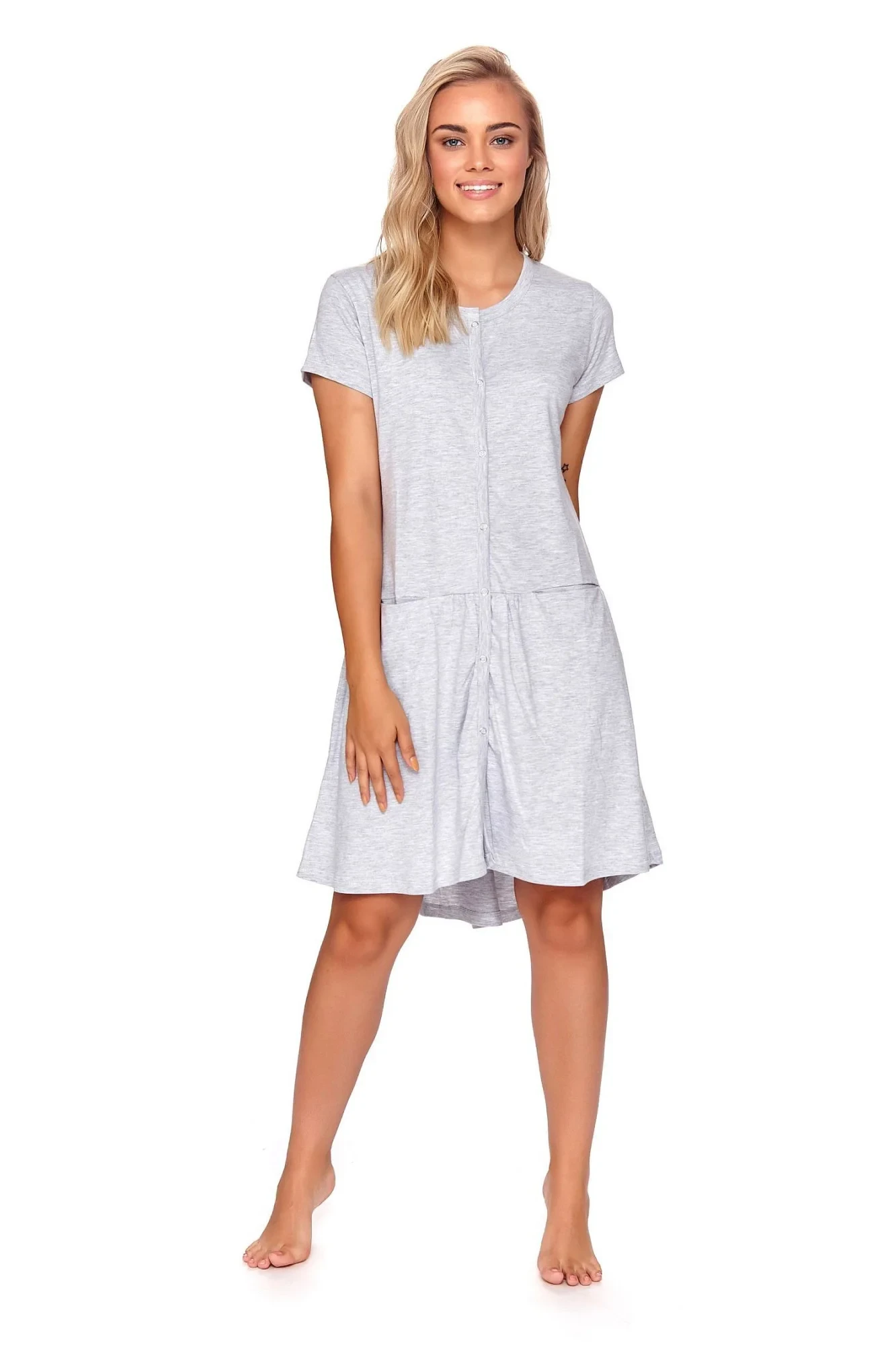 Dámská těhotenská košile 9445 grey Doctornap - šedá barva - z vysoce jakostní bavlny - s krátkými rukávy - zapínání na patentky - s kapsami - ideální pro těhotné a kojící ženy