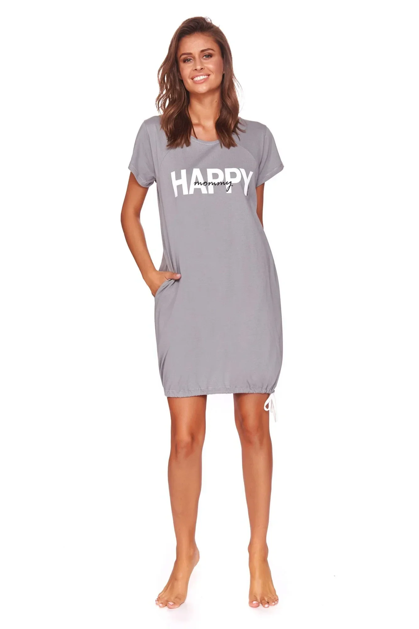 Dámská těhotenská košile 9504 grey Doctornap - šedá barva - z vysoce jakostní bavlny - s krátkými rukávy - zdobená potiskem na přední straně - na bocích kapsy - ideální pro těhotné a kojící ženy - hypoalergenní vlastnosti - certifikát OEKO-TEX Standard 100