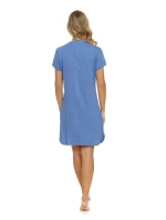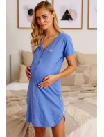 Dámská těhotenská košile 9505 deep blue Doctornap - tmavě modrá barva - z vysoce jakostní bavlny - s krátkými rukávy - zapínání na druky - ideální pro těhotné a kojící - hypoalergenní