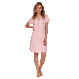 Dámská těhotenská košile 9505 pink Doctornap - růžová barva - z velmi kvalitní a příjemné bavlny - s krátkými rukávy - zapínání na druky - ideální pro těhotné a kojící - hypoalergenní
