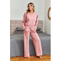 Dres damski DRS.7360 J/25 od marki Dr Nap to doskonałe połączenie swobodnego stylu, wygody i jakości. Luźny, oversize’owy fason sprawia, że komplet sprawdzi się zarówno jako wygodny homewear, jak i stylowa odzież codzienna. Góra to koszulka z długim rękawem o lekko obniżonej linii ramion, która doskonale układa się na sylwetce, zapewniając komfort i pełną swobodę ruchów. Długie spodnie z prostą nogawką posiadają praktyczne kieszenie, dzięki czemu są nie tylko wygodne, ale i funkcjonalne.