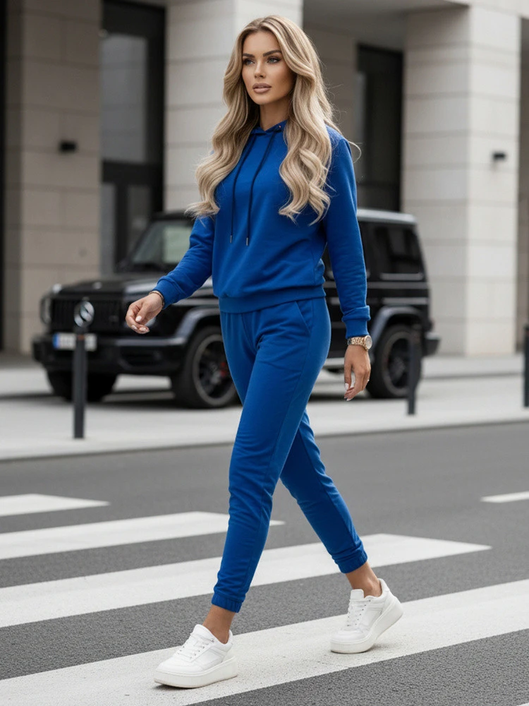 Tato stylová dámská tepláková souprava je kombinací pohodlí a moderního designu. Skládá se z mikiny s kapucí a odpovídajících kalhot, které vytvářejí ucelený a funkční komplet pro každodenní nošení. Minimalistická forma se bude dobře hodit jak pro městskou stylizaci, tak pro každodenní relaxaci.