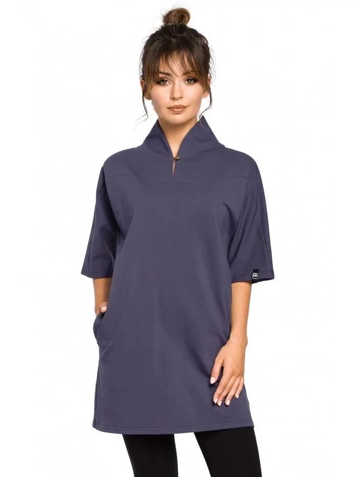 - 90 % bavlna - 10 % elastan Originální tunika s charakteristickým kimonovým rukávem a stojáčkem. Zajímavá volba pro chladnější dny.