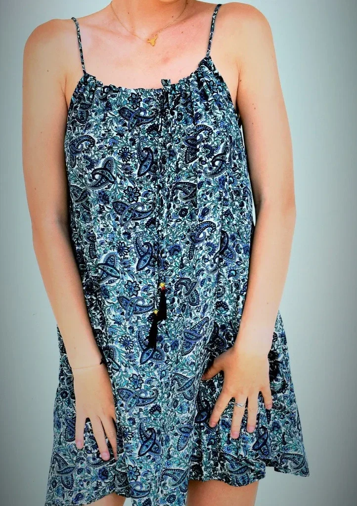 Oversized tunika se špagetovými ramínky. Díky svému pohodlnému střihu, příjemnému materiálovému složení s vysokým podílem hedvábí a krásnému květinovému motivu bude Vaším úžasným letním outfitem. Tunika se zavazuje vepředu. Šňůrka je zdobena střapečky a malou korálkou. Délka cca 85cm. Doporučeno ruční praní.