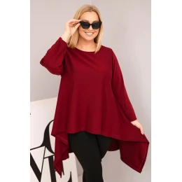 Dámská tunika Plus Size bavlněná s asymetrickým střihem bordová