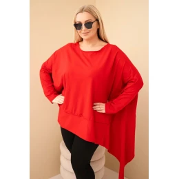 Dámská tunika Plus Size z bavlny s asymetrickým spodním lemem červená
