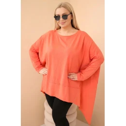 Dámská tunika Plus Size z bavlny s asymetrickým spodním lemem meruňková