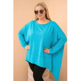 Dámská tunika Plus Size z bavlny s asymetrickým spodním lemem tyrkysová