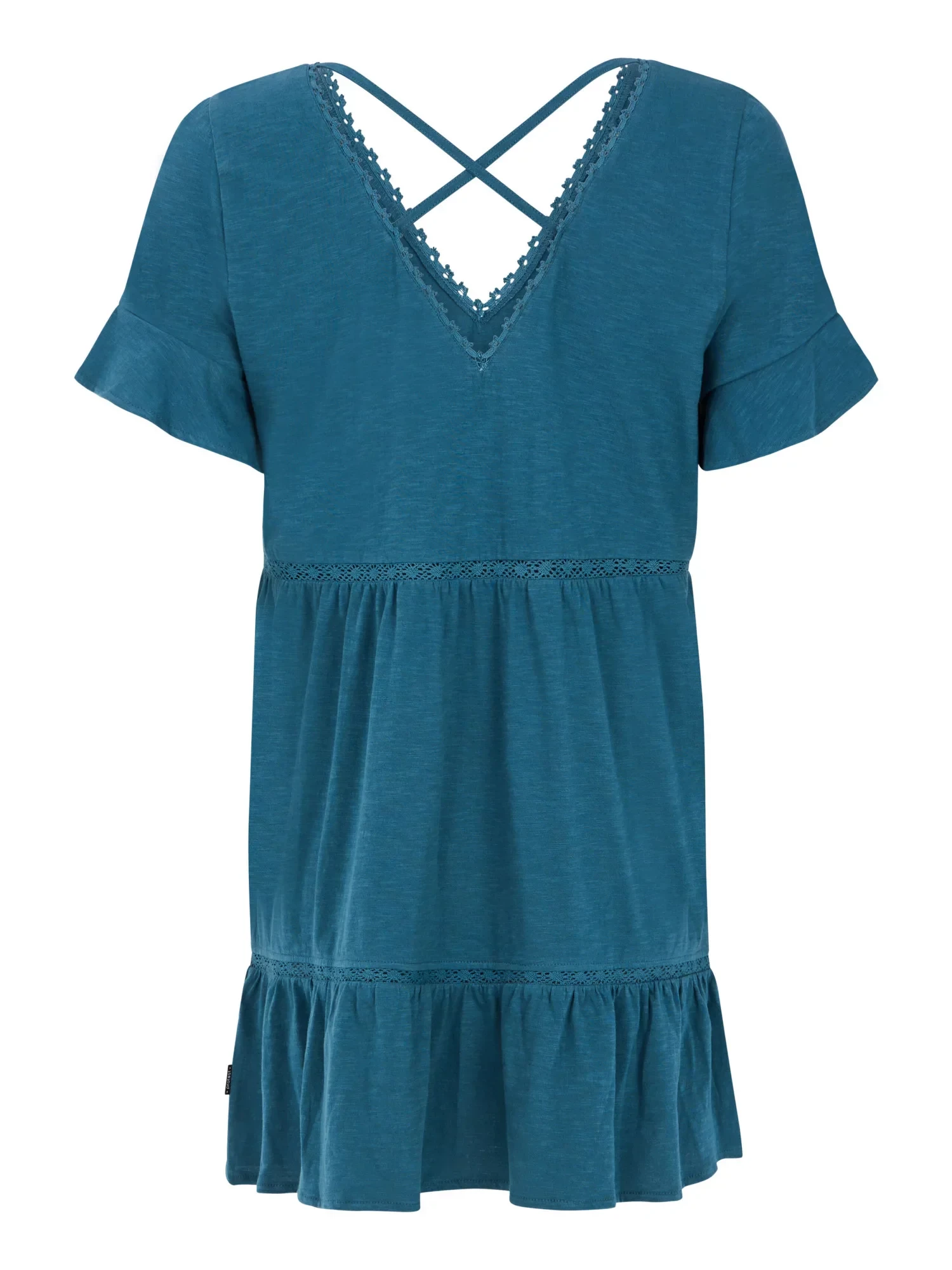 Překřížená ramínka vzadu dodávají klasickému designu tuniky stylový šmrnc.