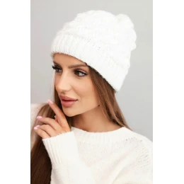 Stylová a teplá dámská čepice vyrobená z vysoce kvalitní příze s přídavkem vlny. Má dekorativní, krajkový vzor, který jí dodává jedinečný charakter, a elastická struktura zajišťuje, že se přizpůsobí každému tvaru hlavy.