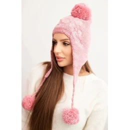 Teplá a stylová čepice s ušima a roztomilými bambulkami, se subtilním vyšívaným vzorem. Model ideální na zimní dny – zajišťuje pohodlí, chrání uši před větrem a přitahuje pozornost originálním designem.