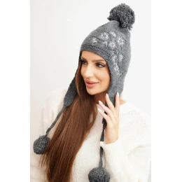 Teplá a stylová čepice s ušima a roztomilými bambulkami, se subtilním vyšívaným vzorem. Model ideální na zimní dny – zajišťuje pohodlí, chrání uši před větrem a přitahuje pozornost originálním designem.