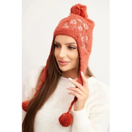 Teplá a stylová čepice s ušima a roztomilými bambulkami, se subtilním vyšívaným vzorem. Model ideální na zimní dny – zajišťuje pohodlí, chrání uši před větrem a přitahuje pozornost originálním designem.