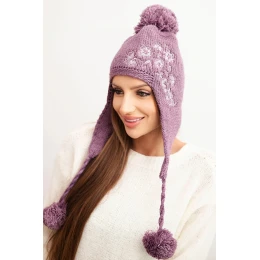 Teplá a stylová čepice s ušima a roztomilými bambulkami, se subtilním vyšívaným vzorem. Model ideální na zimní dny – zajišťuje pohodlí, chrání uši před větrem a přitahuje pozornost originálním designem.