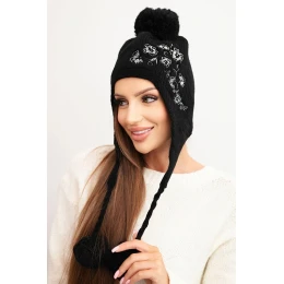 Teplá a stylová čepice s ušima a roztomilými bambulkami, se subtilním vyšívaným vzorem. Model ideální na zimní dny – zajišťuje pohodlí, chrání uši před větrem a přitahuje pozornost originálním designem.