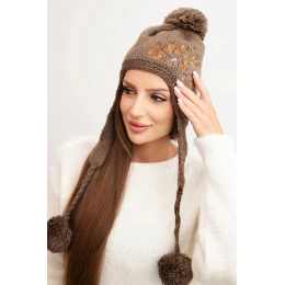 Teplá a stylová čepice s ušima a roztomilými bambulkami, se subtilním vyšívaným vzorem. Model ideální na zimní dny – zajišťuje pohodlí, chrání uši před větrem a přitahuje pozornost originálním designem.
