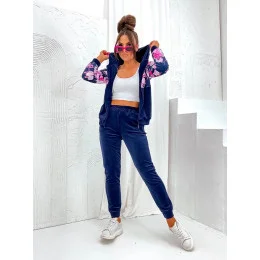 Dámská velurová souprava s růžemi tmavě modrá (8210)