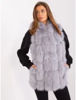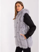 Šedá rozepínací vesta z organické kožešiny.