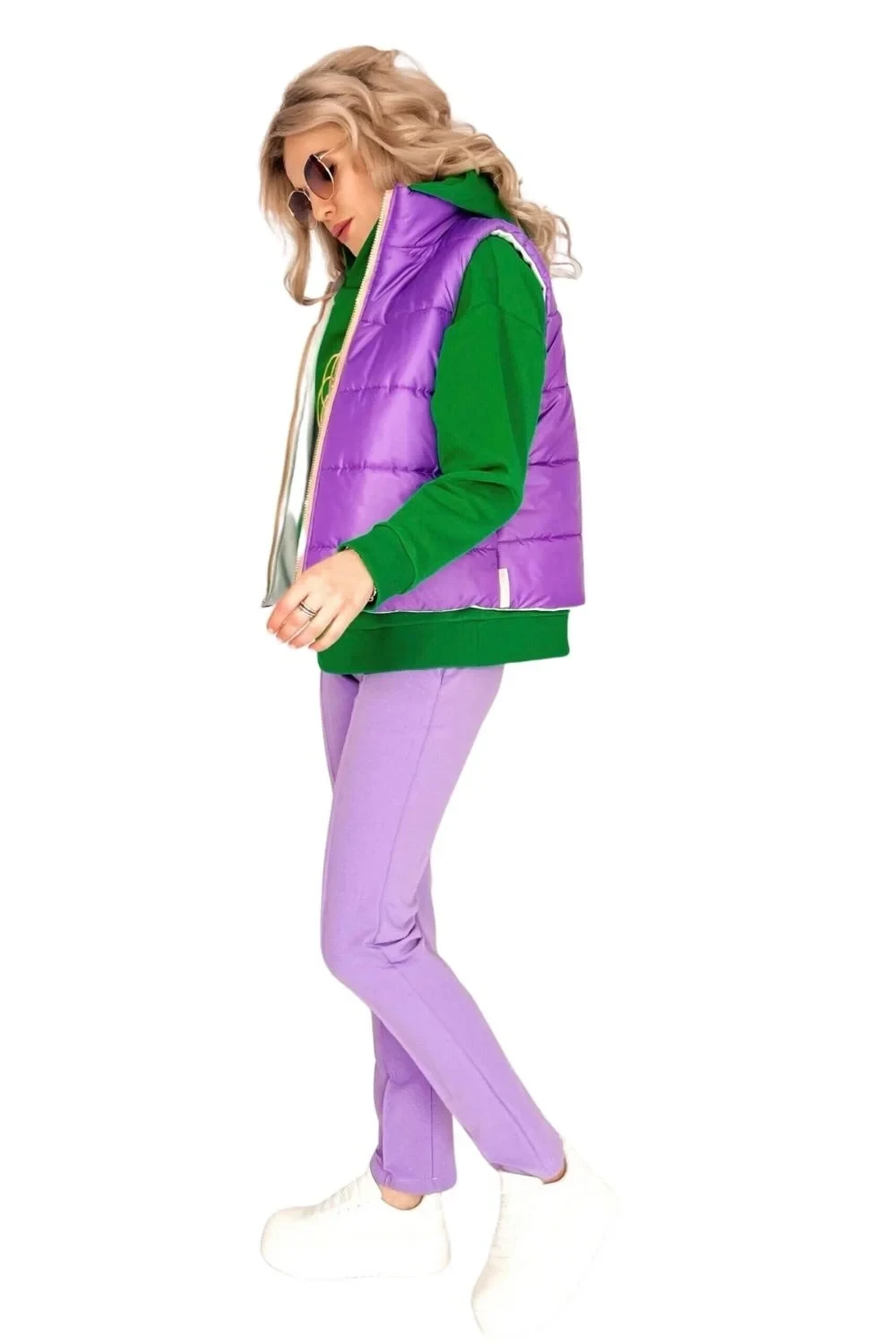 Dámská vesta Joy MM Fashion - bez rukávů - na zadní straně vyšitý znak Hippie - zapínání na zips - modelka měří 164 cm