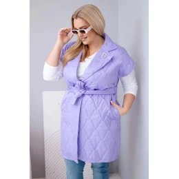Stylová, prošívaná dámská vesta s páskem je nabídkou pro ženy, které si cení eleganci spojenou s pohodlím. Model s klasickým límcem a dekorativní broží „D” krásně zvýrazňuje siluetu díky přiloženému pásku, který lze regulovat v pase. Prošívaný materiál s geometrickým vzorem dodává celku moderní charakter a délka po kolena zajišťuje ochranu a komfort v chladnějších dnech.