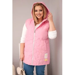 Dámská vesta Plus Size s kapucí a květinovým prošíváním světle růžová