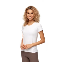 Univerzální dámské tričko je nadčasovým základem šatníku, který se uplatní v každé situaci. Klasický design s krátkým rukávem a kulatým výstřihem zajišťuje pohodlí a volnost pohybu po celý den. Tričko je vyrobeno z prodyšné tkaniny příjemné na dotek, dokonale se přizpůsobí siluetě a podtrhne ženský styl. Je ideální jak pro každodenní stylizaci s džínami, tak jako základ pod sako nebo svetr. Je nezbytným doplňkem každého dámského šatníku.