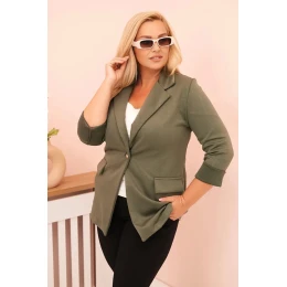 Dámská viskózová blazer Plus Size s dlouhým rukávem a límcem khaki