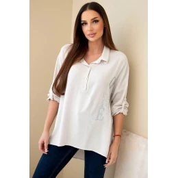 Dámská viskózová blůza s límečkem a potiskem s cyrkoniemi béžová