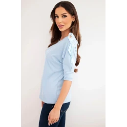 Dámská viskózová blůza s ozdobnými stužkami modrá