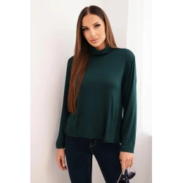 Dámská viskózová blůza s rolákem a dlouhým rukávem tmavě zelená
