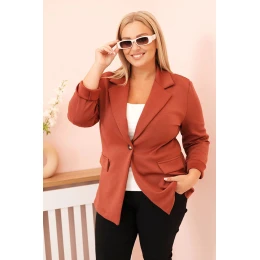 Elegantní a pohodlná dámská blazer z viskózy plus size, která dokonale spojuje stylový vzhled s komfortem nošení. Vyrobena z příjemné na dotek směsi viskózy, polyesteru a elastanu, skvěle se přizpůsobí postavě, neomezuje pohyby a hodí se jak na každodenní nošení, tak do práce či na schůzky. Model zapínaný na jeden knoflík, s klasickým límcem a ozdobnými klopami u kapes – dodává šarm každé stylizaci.
