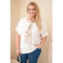 Dámská viskózová halenka Plus Size s krátkým rukávem a ozdobným šátkem béžová