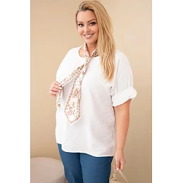Dámská viskózová halenka Plus Size s krátkým rukávem a ozdobným šátkem bílá