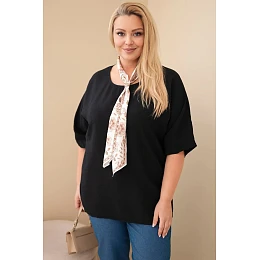 Dámská viskózová halenka Plus size s krátkým rukávem a ozdobným šátkem černá