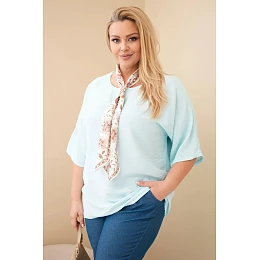 Dámská viskózová halenka Plus Size s krátkým rukávem a ozdobným šátkem mentolová