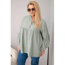 Dámská viskózová halenka Plus Size s volánovým rukávem a výstřihem do V khaki