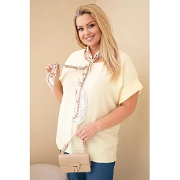 Dámská viskózová halenka pro plnoštíhlé s krátkým rukávem a ozdobným šátkem žlutá