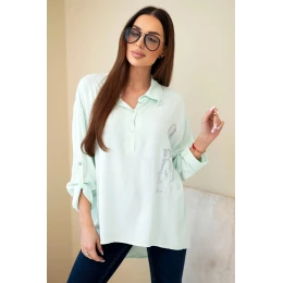 Dámská viskózová halenka s límečkem a potiskem z cyrkonií mentolová