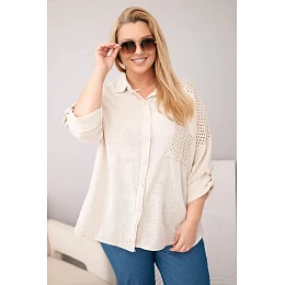 Dámská bavlněná košile Plus Size s límečkem a krajkovou vsadkou béžová