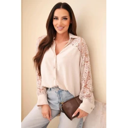 Dámská viskózová košile s krajkovými rukávy a límečkem béžová