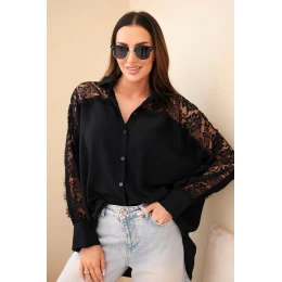 Dámská viskózová košile s krajkovými rukávy a límečkem černá