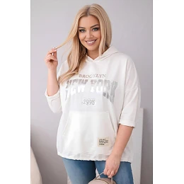 Dámská viskózová mikina Plus Size s kapucí a klokaní kapsou ecru