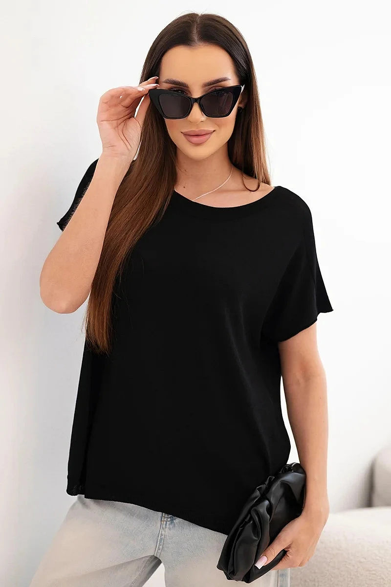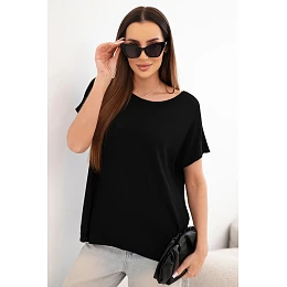 Dámská viskózová oversize halenka s krátkým rukávem a kulatým výstřihem černá